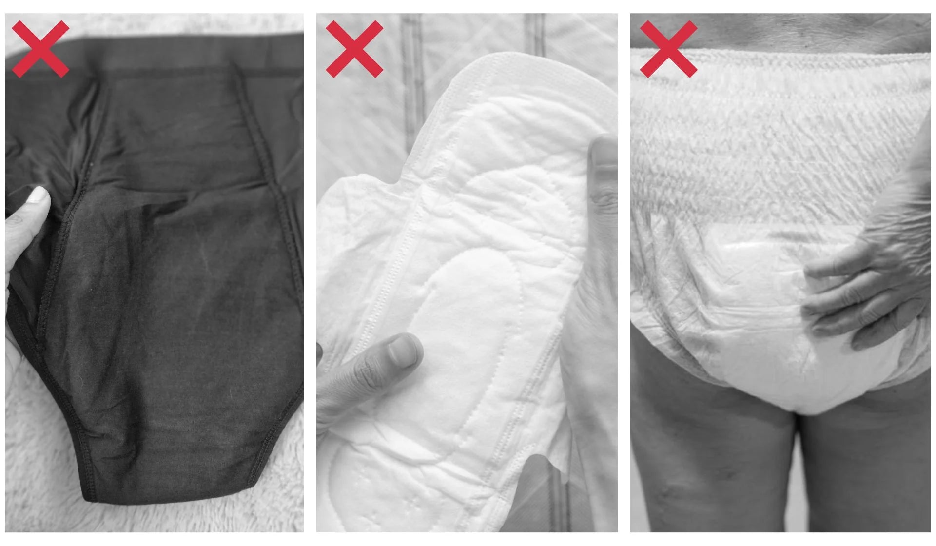 Traditional incontinence pads designed for light, predictable flow - not sudden, heavy episodes.